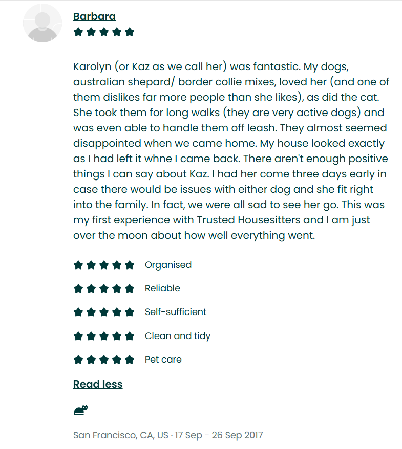 I was with Trusted Housesitters for many years. However, as the company grew, and was eventually sold off for $100 million to Mayfair Equity Partners (a London-based private equity firm that focuses on growth capital and buyout investments) I noticed (at least, what seemed to me) a huge shift in their priorities.